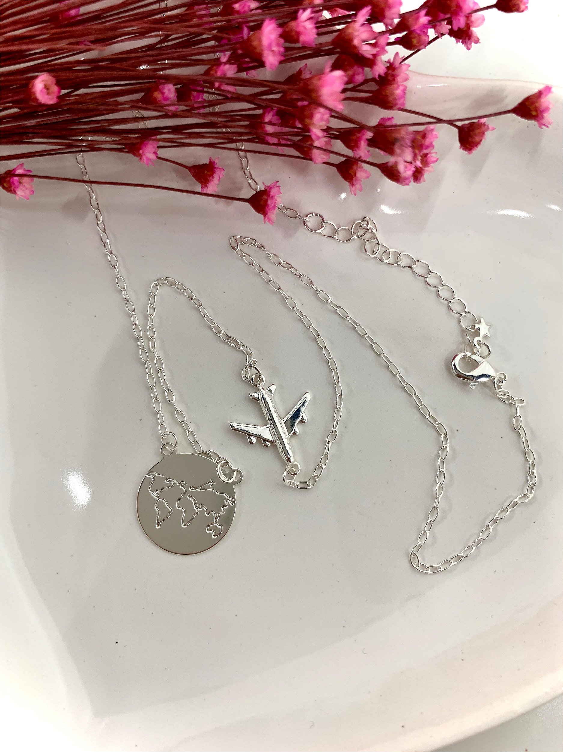COLAR 45CM CADEADINHO MUNDO E AVIÃO