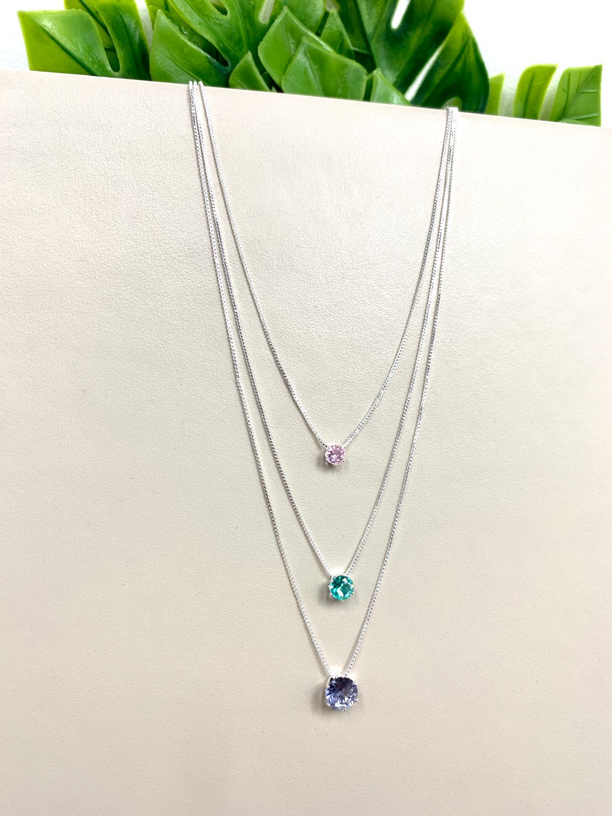 COLAR TRIPLO 40CM, 45CM E 50CM, ROSA, TURMALINA E AMETISTA
