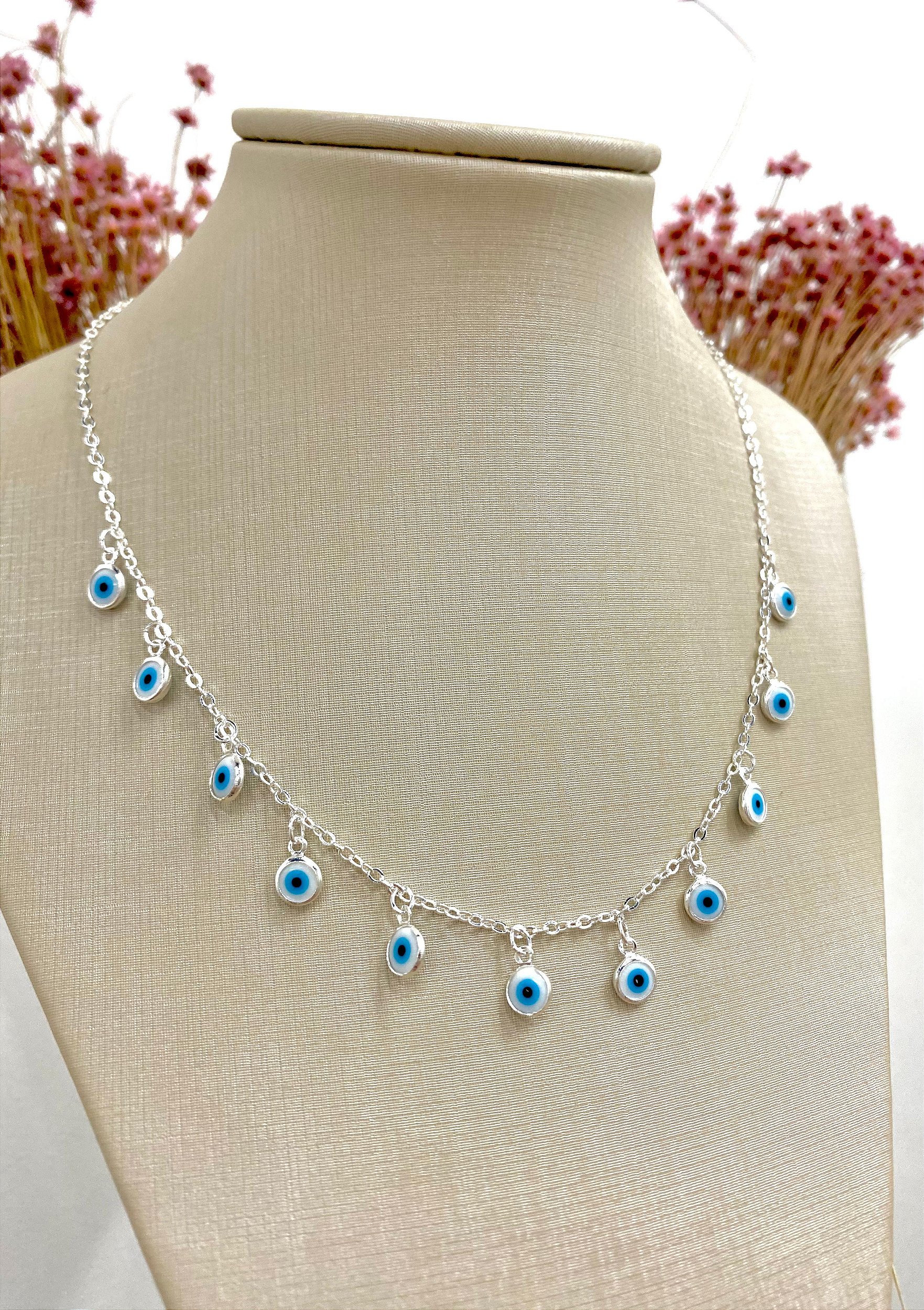 COLAR 40CM CADEADINHO FININHO COM PINGENTES OLHO GREGO