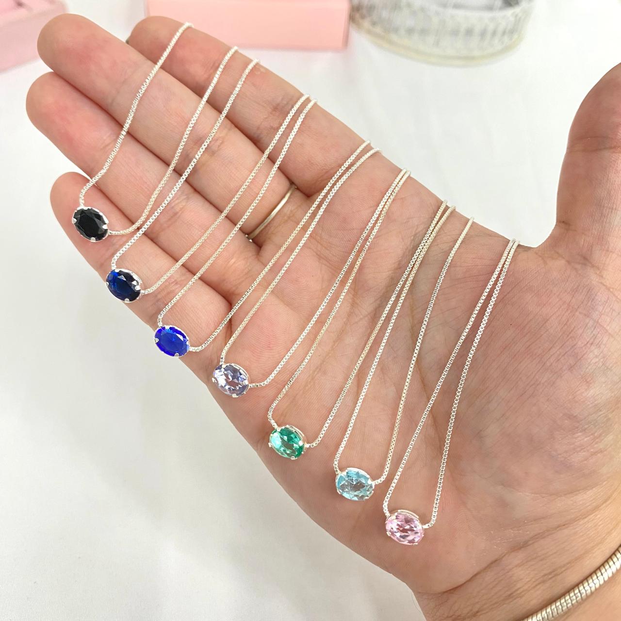 COLAR VENEZIANA 45CM COM PEDRA OVAL